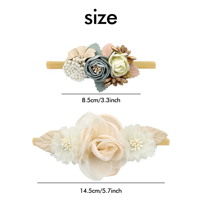 - SET OF 5 SPECIAL COLORS - These five different flower headbands show two main colors, including ivory and white. Fashionable colours are perfect for baby girls to match with their outfits at baby christening or photography.
