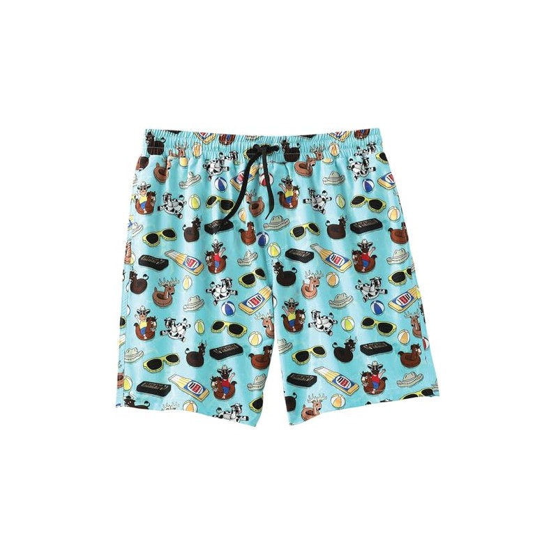Cinch Men's Swim Trunks in Blue Cowboy Swimming with Rodeo Floaties in the Pool Print