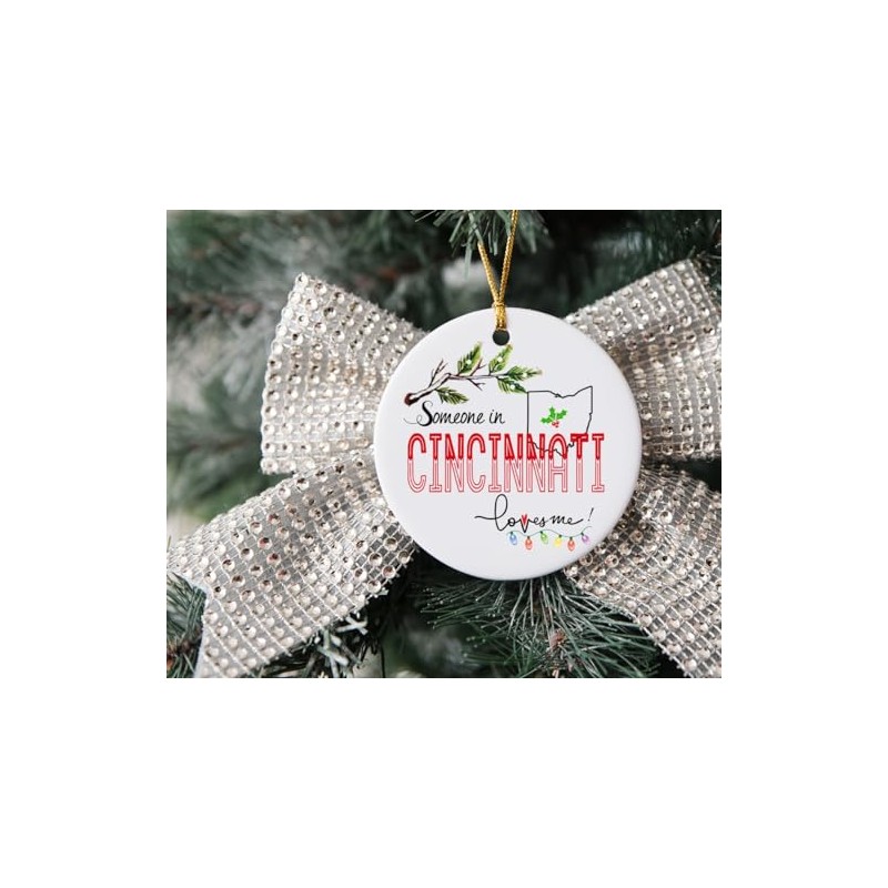 Cincinnati Ohio Souvenir Christmas Ornament 2024 Someone in Cincinnati OH Loves Me! Christmas Family Friend Gifts Ideas 3" White