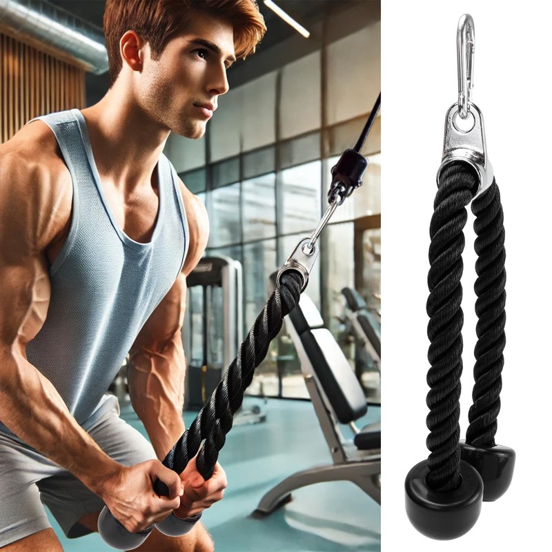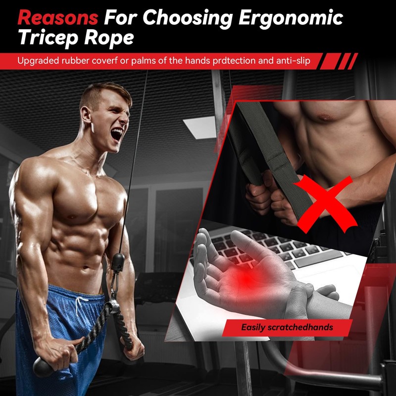 - Nylon Rope: The triceps rope cable attachment is constructed with high-strength nylon material, ensuring its durability and robustness. It can withstand intense pulling and stretching without compromising its performance.