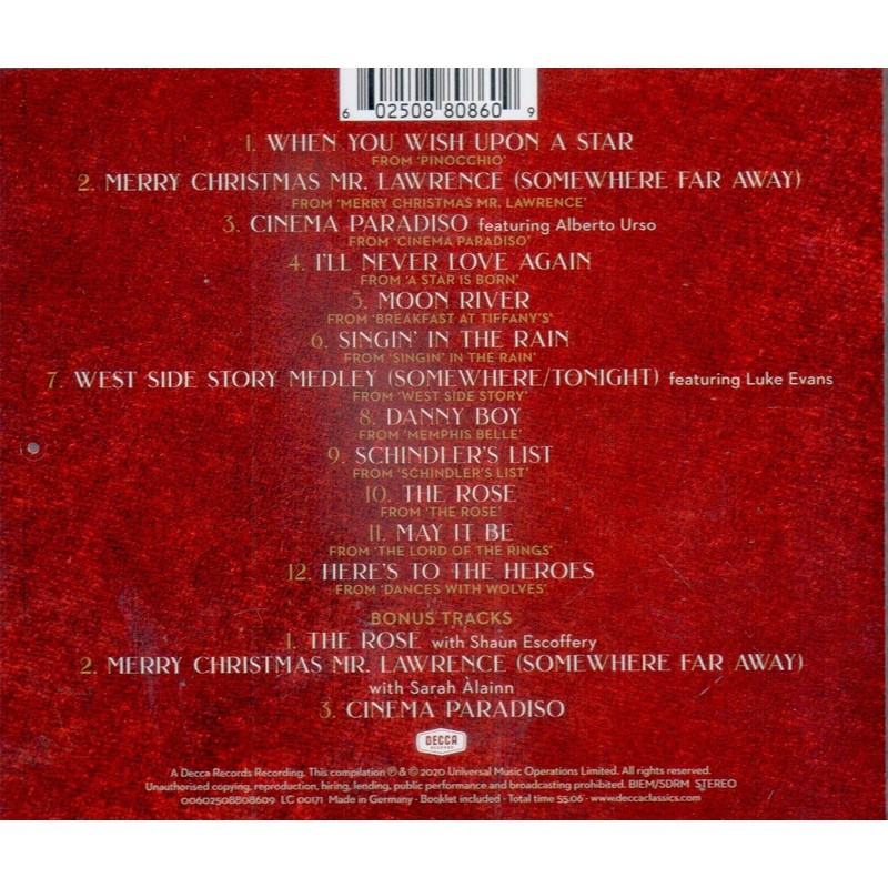 - The latest album from mezzo-soprano Katherine Jenkins, Cinema Paradiso is a collection of unforgettable songs from some of the world's best loved movie moments including: ?"Moon River'" from ?Breakfast at Tiffany's, Pinocchio's "When You Wish Upon A Star,"? ?"Tonight" ?from ?West Side Story,? featuring Luke Evans,? as well as themes from ?Schindler's List, Lord of the Rings? and ?more