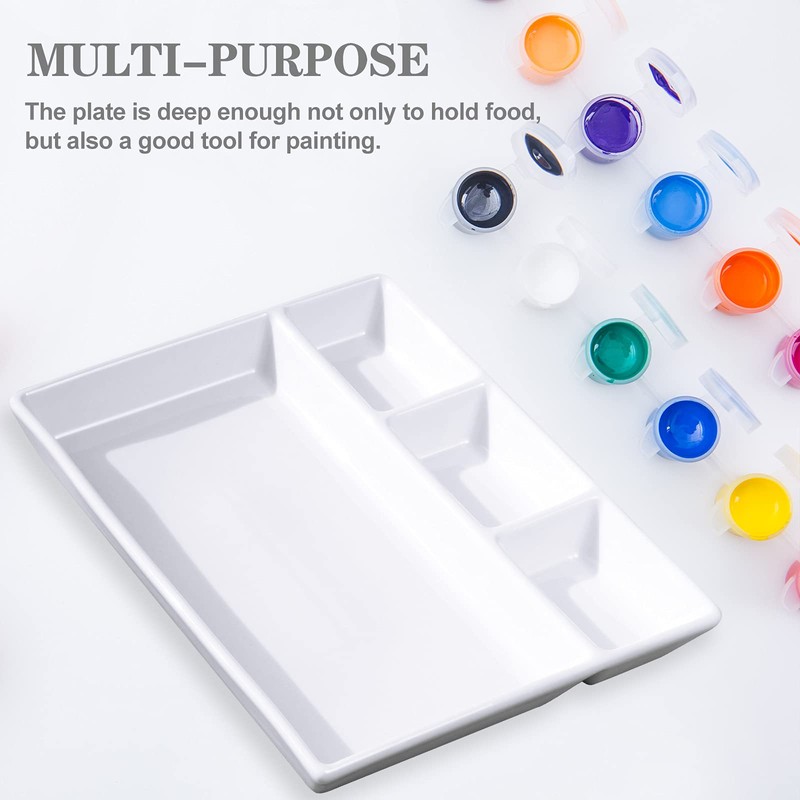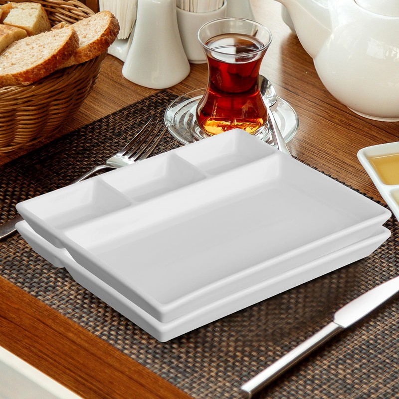 - DURABLE SHALLOW PLATES: 2pack ceramic plate With 4 compartments amply sturdy for everyday small portions meals,serving condiments & dipping sauce(ketchup,salad dressing,soy,chili sauce),snack,candy.