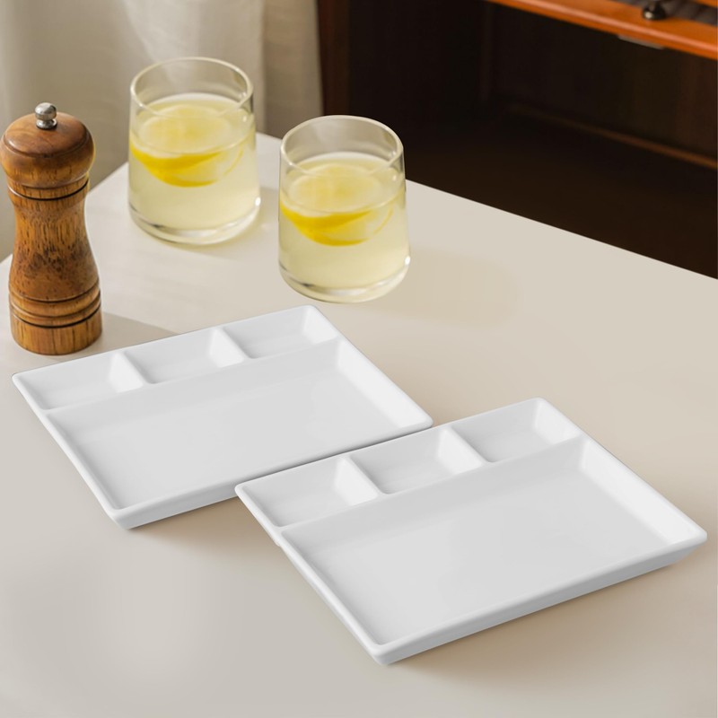Cinf Divided Ceramic Plate Compartments Sauce Dishes Serving 2 Pack Quadrant Shaped Dinner Luncheon Salad Pigment Tray Snacks