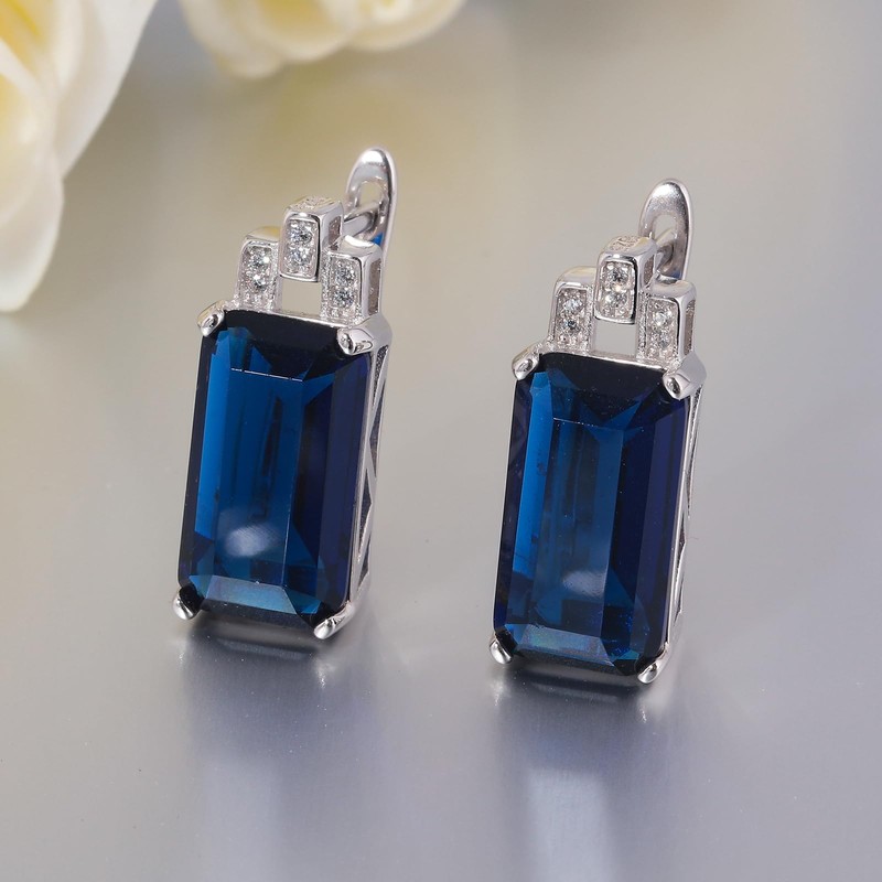 - Rectangular CZ Dangle Hoop Earrings:Rectangular Gemstones Classic Hoop Earrings, Nice and secure easy-hoop clasp for safety. Not easy to fall off and stay closed. The stunning sapphire colors in this stone makes it a perfect fashion earrings. You will love this vintage style drop earrings