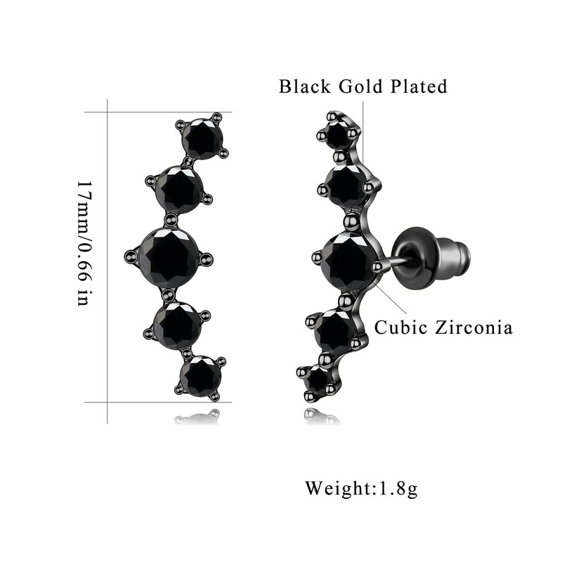 - 【Girls Small Cartilage Stud Earrings】Ear crawler earrings add style and elegance to your looks. Easy to match costume. Fashion cuff climber earrings made of high quality 14K black gold plated brass and black cubic zircon, lead-free, nickel-free and hypoallergenic.