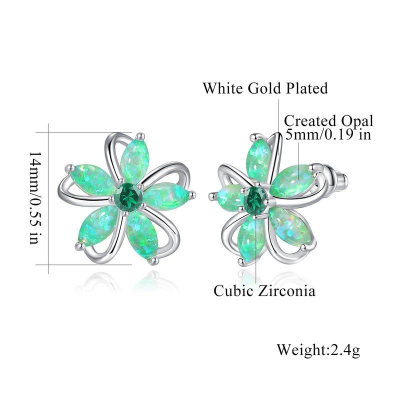 CiNily Flower Earrings, Opal Stud Earrings for Women 14K White Gold Plated Ladies Flower Stud Earrings Cute Unique Earrings Green Opal Earrings for Women