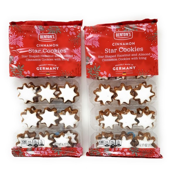 Cinnamon Star Cookies | Star Shaped Hazelnut and Almond Cinnamon Cookies with Icing | Proudly Made in Germany | 6.17oz/175g (Pack of 2)