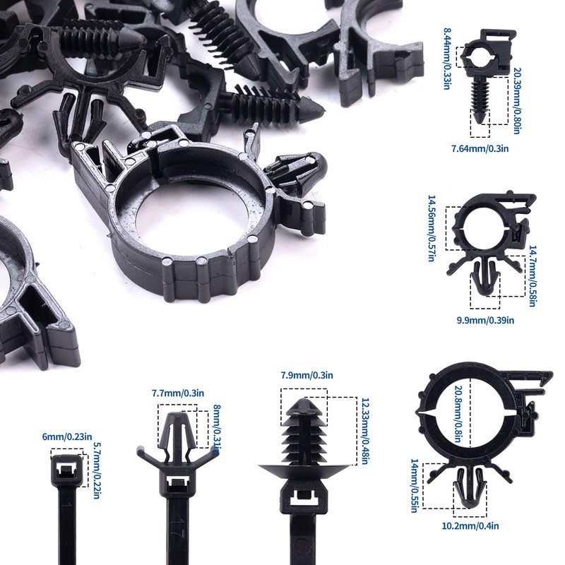 - Package Included: 150pcs (120pcs 3-types nylon self locking cable strap+ 30pcs 3-types wire loom clips), help to keep wiring and harnesses routed neatly and securely