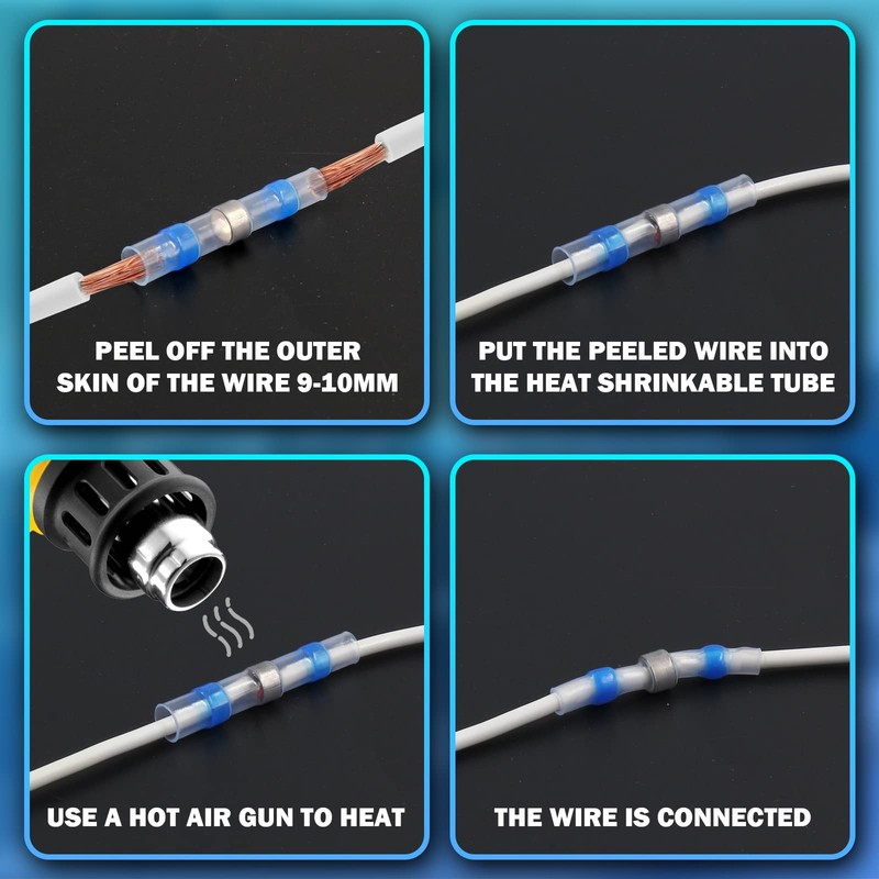 The method of use is very simple, only one item that can be heated, such as a lighter and a hot air gun, is required.Set it on the wire that needs to be connected and heat it to complete the installation.