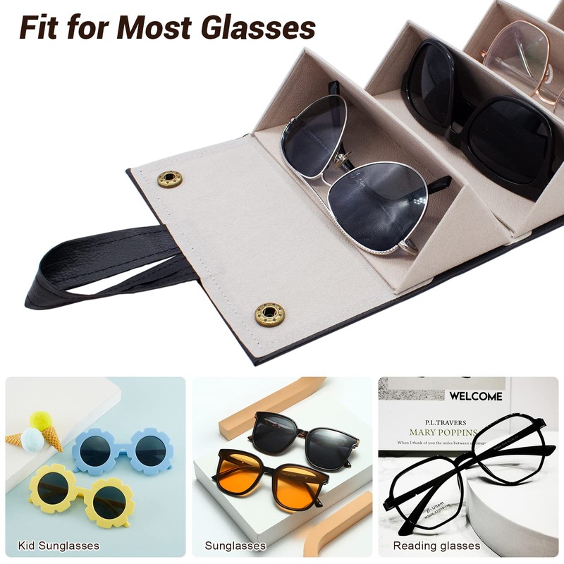 The CIOUYAOS 5 slot sunglass organizer can meet your eyeglass storage and fashion needs at the same time. Our eyeglass case is designed with high quality PU leather and has a practical function of being hangable and foldable.