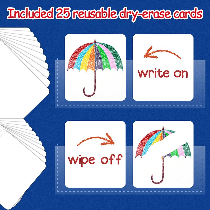 • Premium Quality: Chart made from 600D nylon, durable and dust-resistance. Illustrated cards (not dry erasable) printed with Non-toxic high gloss ink and all blank flash cards with PET film, dry erase and leave no residue.