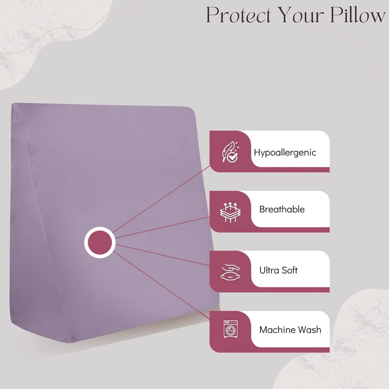 CIRCLESHOME Wedge Pillow Cover 100% Cotton, Zippered Wedge Pillow Case Protector, Soft, Hypoallergenic & Breathable -Lavender, (24Wx25Lx12)