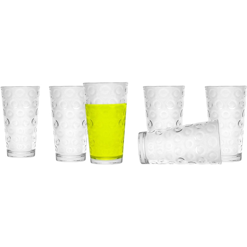 Circleware Circles Huge Set of 10 Tall Heavy Base Highball Drinking Glasses, 15.7 oz, Lead-Free Glass Tumbler Drink Cups for Water, Beer, & All Beverage