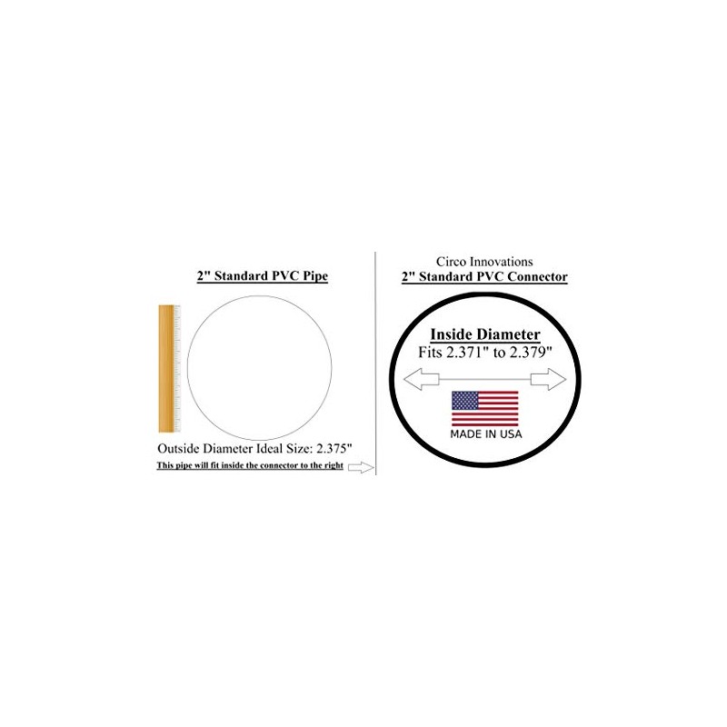 • 2" Fittings fit on 2" Schedule 40 PVC or Furniture Grade PVC. Please check out our PVC Sizing Guide (Specification Sheet) to make sure that you order the correct size PVC Fittings. PVC is NOT measured by the outside diameter, and doing so will result in receiving fittings that are too big for your pipe.