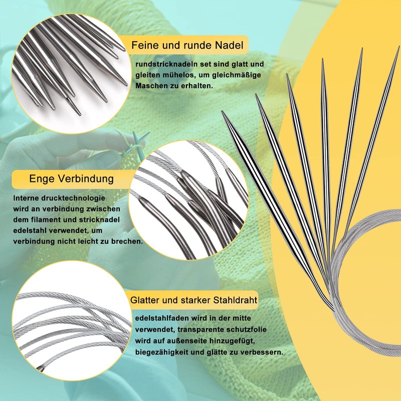 - Best gift choice: If you want to send a novel gift, use these high-quality circular knitting needles set. The stainless steel yarn circular knitting needle is a perfect gift for your daughter, wife, granddaughter, grandmother and friends who love knitting, DIY enthusiasts for Christmas, birthday, Mother's Day, anniversary, Valentine's Day, Halloween, Thanksgiving Day, New Year's Day.
