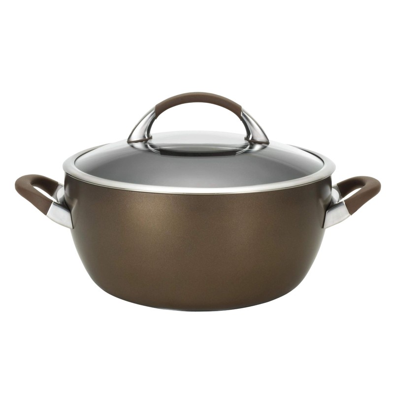 Perfect for simmering a hearty minestrone soup on the stovetop or braising chicken in Red wine sauce in the oven, this Circulon Symmetry Chocolate hard- anodized Nonstick 5.5-Quart covered casserole boasts an attractive, contemporary exterior. This well-designed, induction-suitable pot adds sophistication and style to any kitchen decor. The casserole; s heavy-duty hard-anodized aluminum construction is twice as hard as stainless steel and provides long-lasting durability. Its interior features the total® nonstick system of raised circles and triple layer, premium quality, metal utensil safe nonstick for long-lasting food release and easy cleanup, ideal after preparing a batch of spicy black bean Chili. Oven safe to 400°f, the casserole features rubberized stainless steel handles for a comfortable grasp, making it easier to transfer it in and out of the oven. The shatter-resistant glass lid makes a tight seal that locks in heat and moisture. This casserole is conveniently dishwasher safe and makes an ideal addition to Circulon collections.both in and out of the oven, The Circulon Symmetry Chocolate hard-anodized Nonstick 5.5-Quart covered casserole offers superior nonstick technology for cooking lighter meals without sacrificing flavor.