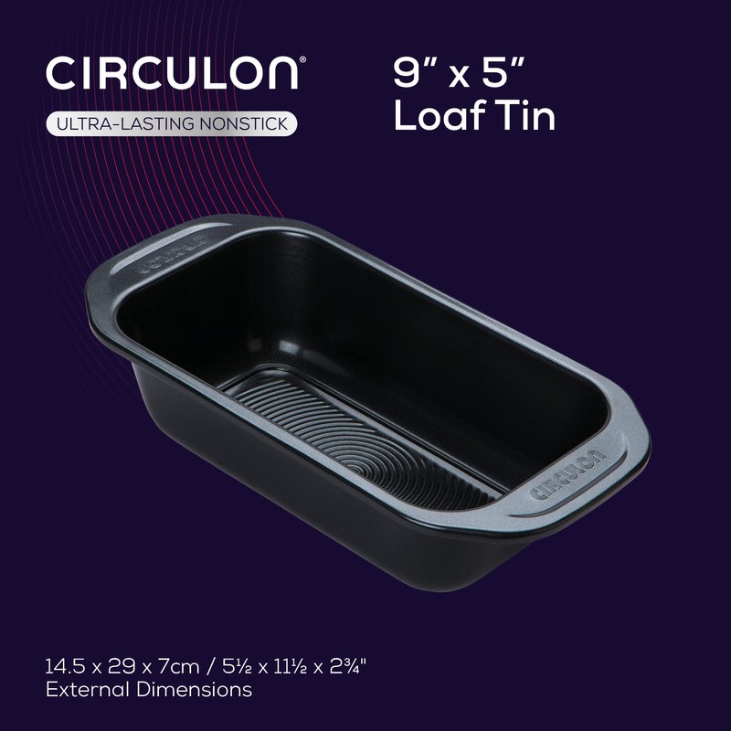 Circulon Ultimum 2lb Loaf Tin - Non Stick 9 Inch Loaf Tins for Baking, Freezer and Dishwasher Safe Carbon Steel Bakeware, Black