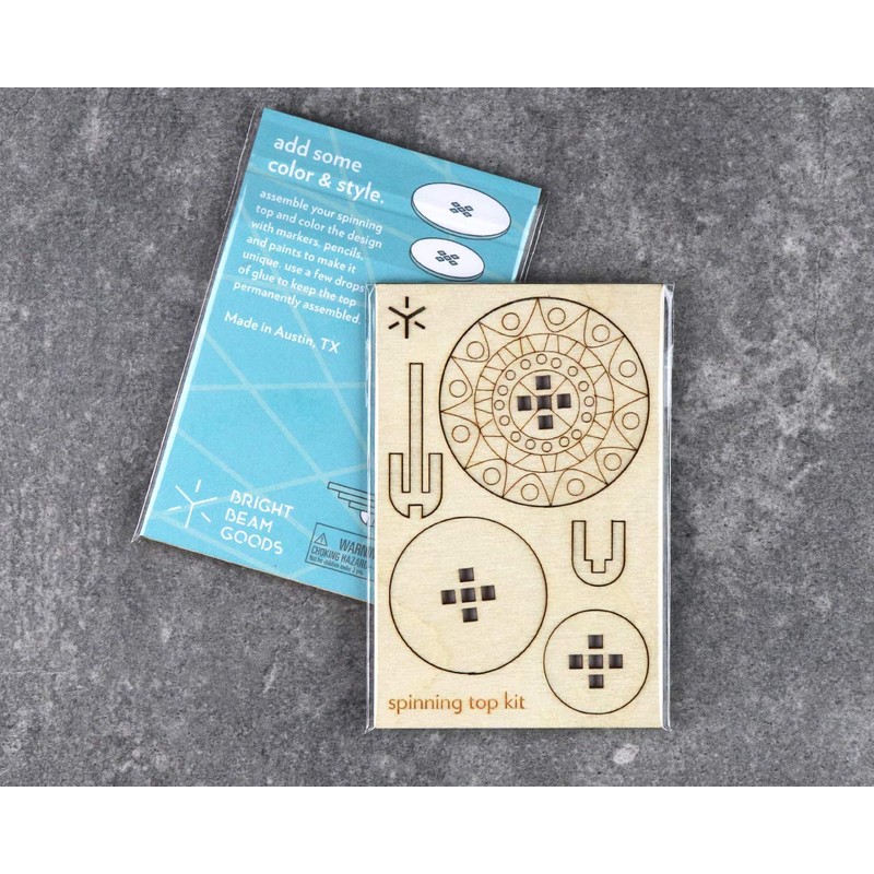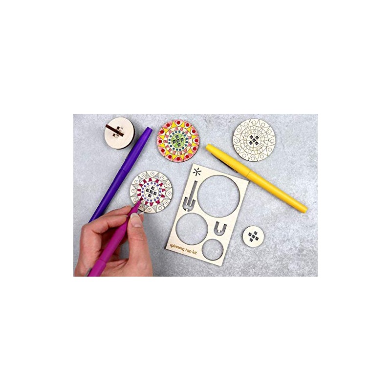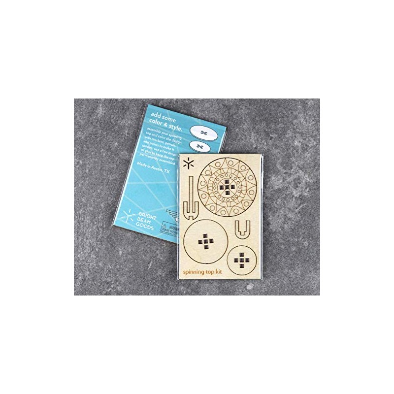 These flatpack spinning top kits are pure joy! Color, assemble and spin... simple as that! You can use highlighters, markers, colored pencils - pretty much anything but crayon will do. The top kits measure approximately 3" x 5" x .125".