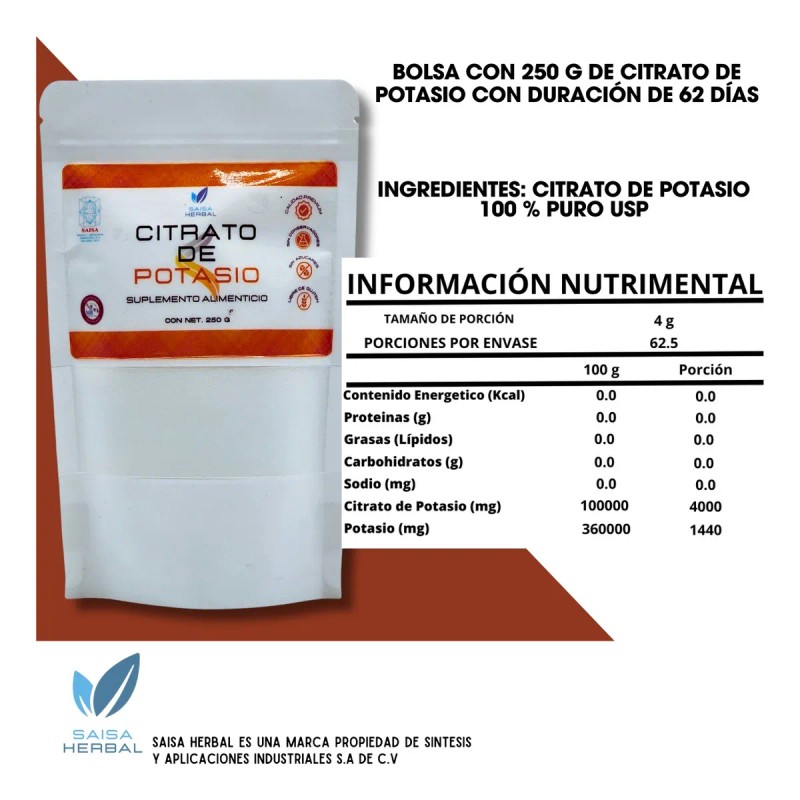 Citrato De Magnesio 250 G. Y Citrato De Potasio 250 G. Sin Sabor