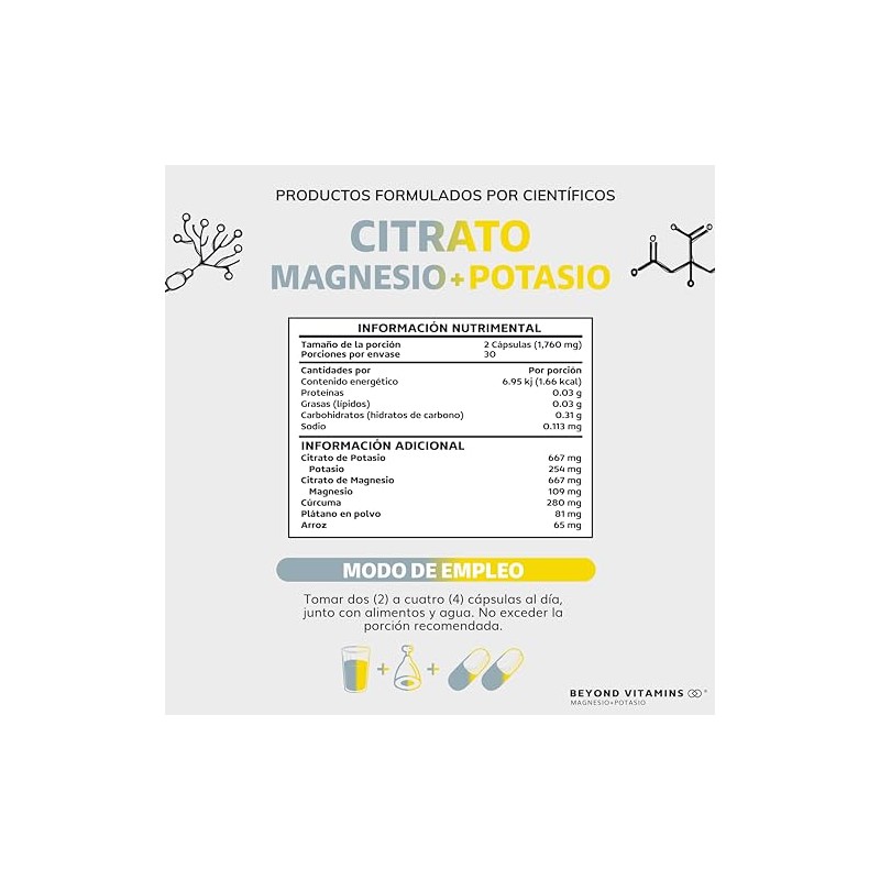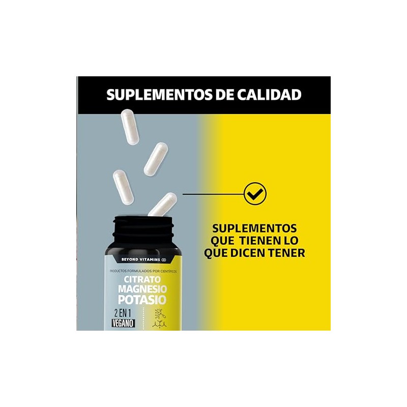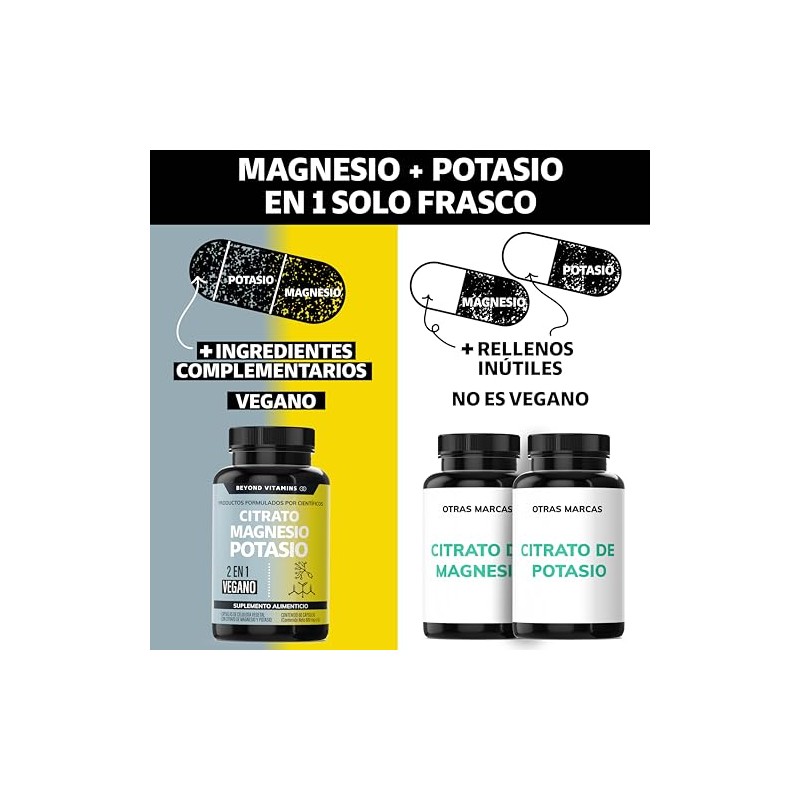BEYOND VITAMINS - Citrato de Magnesio + Citrato de Potasio | 1334 mg de citrato de magnesio y citrato de potasio | Adicionados con Platano en Polvo, Curcuma y Arroz | Cápsulas sin rellenos | Vegano | Citrate Magnesium + Potassium Citrate-60 cápsulas. ✅ Diseño innovador que supera las expectativas. Diseño ergonómico y funcionalidad excepcional. 🏆 Recomendado por expertos. Ideal para quienes buscan lo mejor en calidad y estilo. Producto auténtico con satisfacción total asegurada. ¡No te quedes sin el tuyo y aprovecha esta oportunidad única!