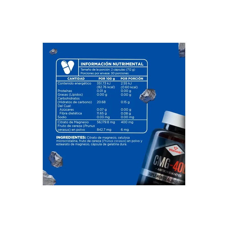 Citrato de Magnesio Vitamínik CMG-400 60 Cápsulas con Extracto de Cereza