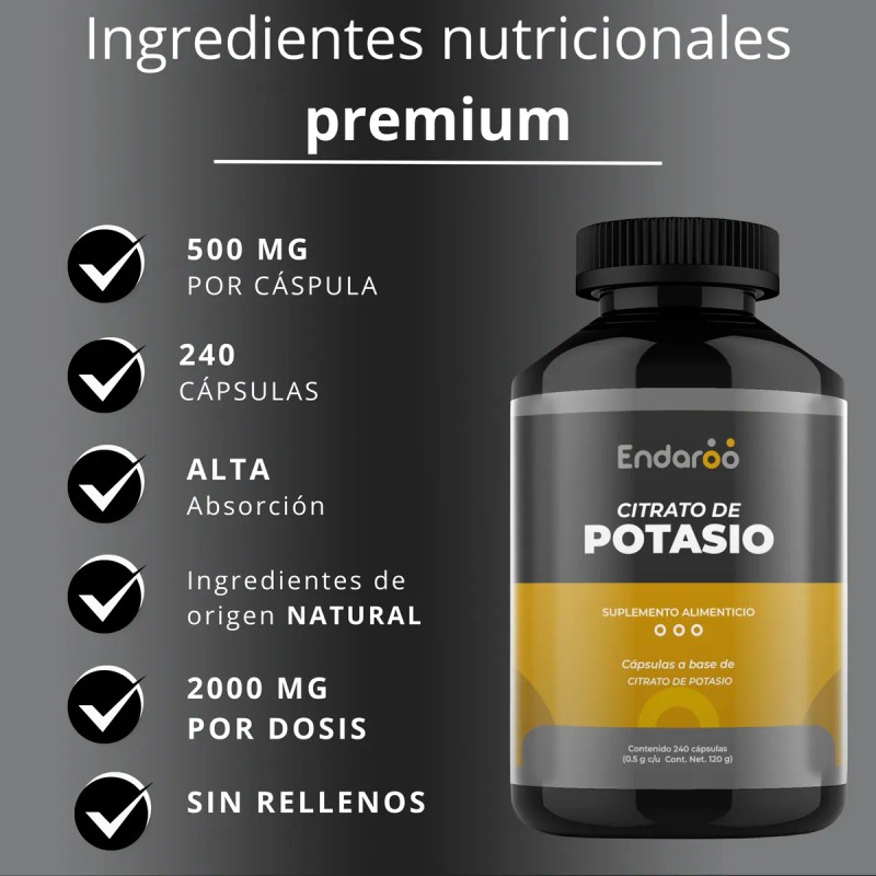 La combinación de Citrato de Magnesio y Citrato de Potasio en este suplemento de Endaroo crea una sinergia poderosa que potencia sus beneficios individuales. Juntos, estos minerales actúan para: