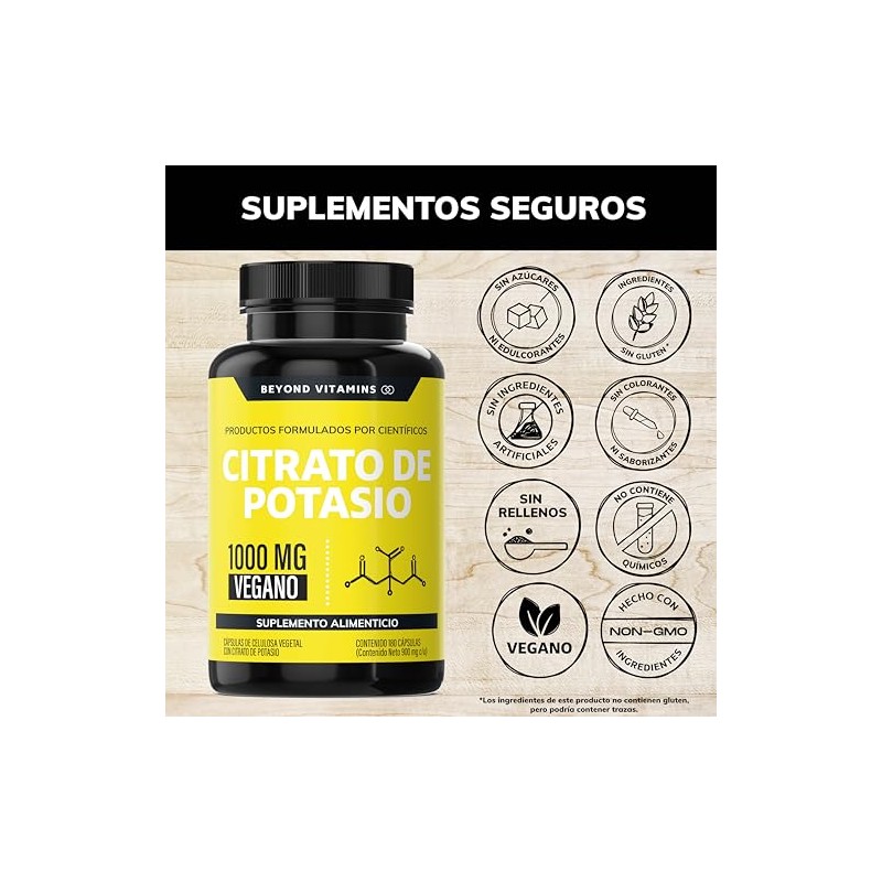 - ❌ ESTE PRODUCTO NO CONTIENE: El suplemento CITRATO DE POTASIO es elaborado SIN RELLENOS, SIN AZÚCAR, SIN EDULCORANTES, SIN INGREDIENTES ARTIFICIALES, SIN COLORANTES Y SIN SABORIZANTES ARTIFICIALES. Es un producto NON GMO (no modificado genéticamente).
