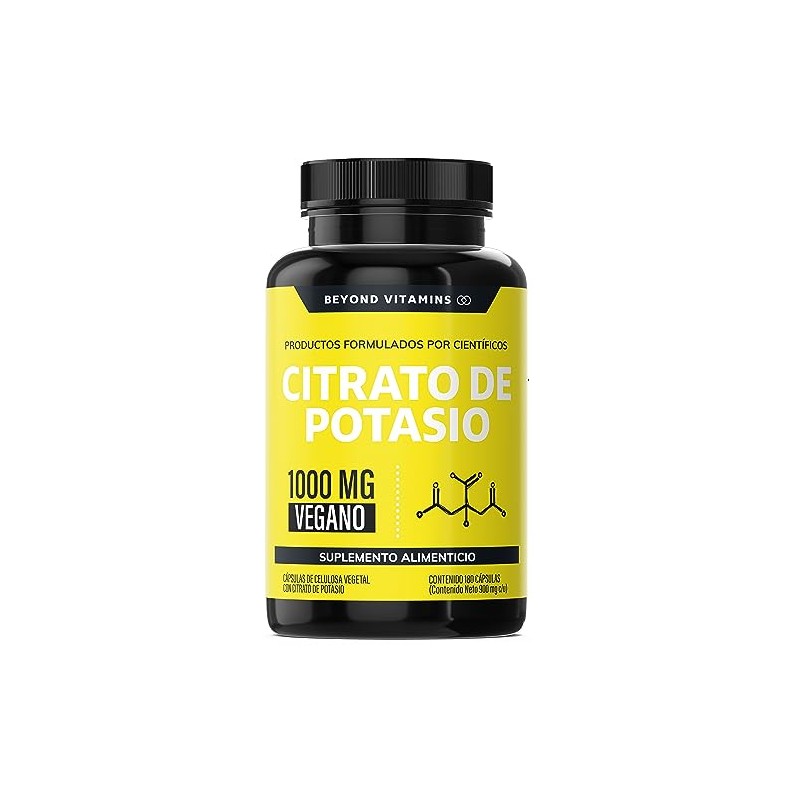- 💪 ALTA CONCENTRACIÓN: Cada cápsula contiene 1000 mg Citrato de Potasio puro. Además, adiciona platano en polvo, curcuma y semilla de uva. SIN RELLENOS. Es VEGANO.