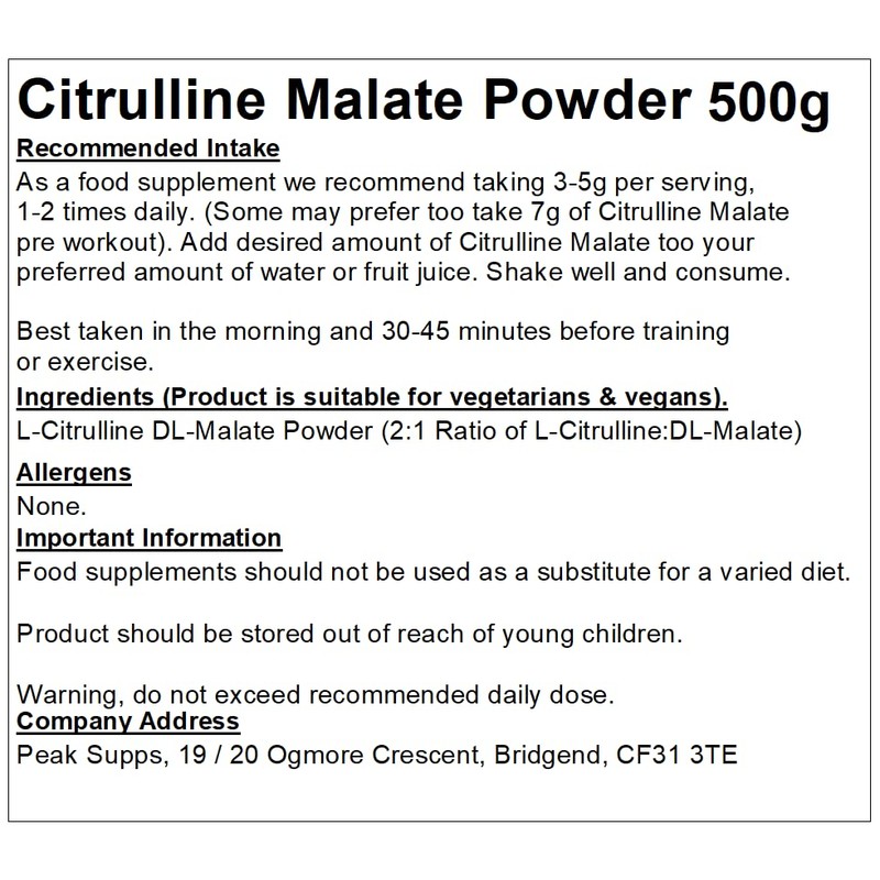 Citrulline Malate Powder | Pure | 2 to 1 Ratio (500g)