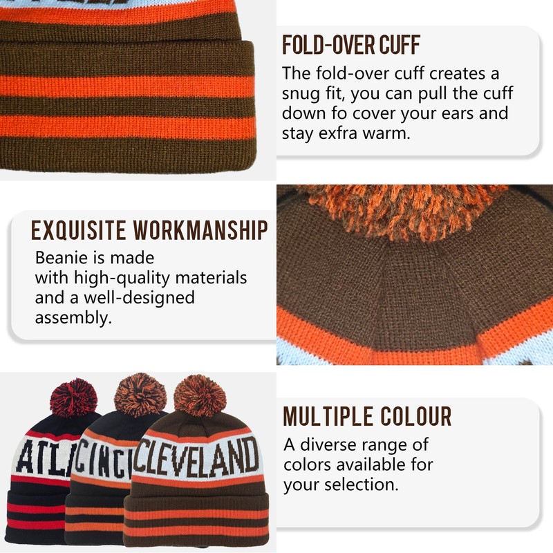 City Classic Cuff Beanie Hat Cuffed Winter Hat Knit Toque Skull Cap Brown&Orange