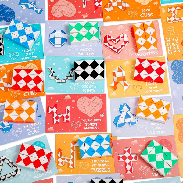 - Reliable material: our Valentines gift cards are made of quality paper cardboard with clear printing, which is thick and firm, and not easy to break or fade; These puzzle snake toys are made of quality plastic, stable, smooth and easy to play; Also these adhesive dots can help stick the toys to the Valentine's card, just tear them apart slowly and glue them together