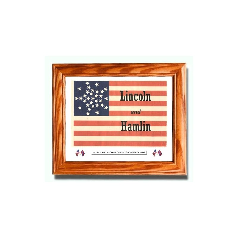 - 1860 ABRAHAM LINCOLN CAMPAIGN FLAG Homemade Flag is printed on cotton muslin Solid wood American made 10" x 12" Oak frame ready for wall hanging. Custom made to order in the USA