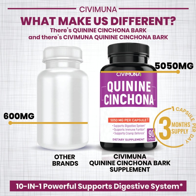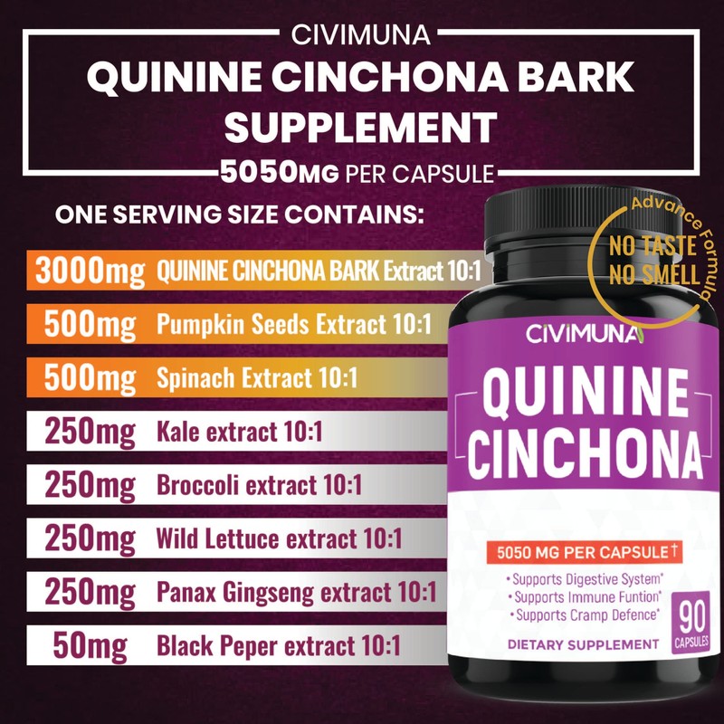 CIVIMUNA Quinine Cinchona Bark Capsules 5050mg - Quinine Cinchona Bark, Pumpkin Seeds, Spinach - 3 Months Supply