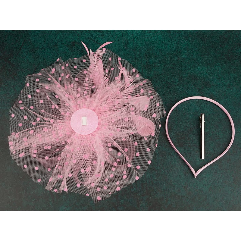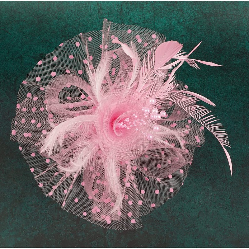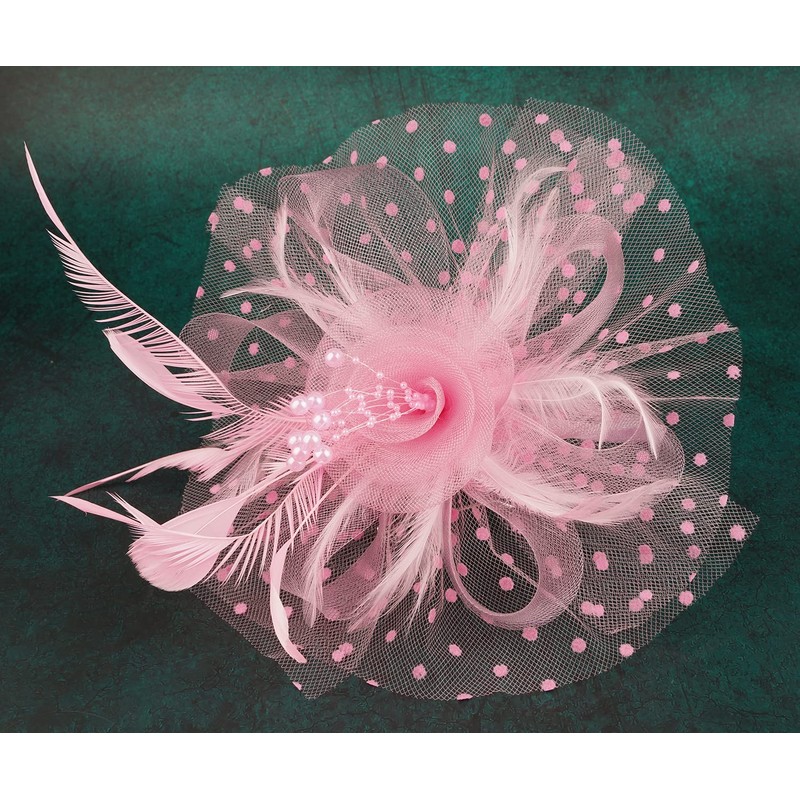 Cizoe Fascinators Hat for Women Tea Party Headband Kentucky Derby Wedding Flower Cocktail Mesh Feathers Hair Clip(1-Pink)