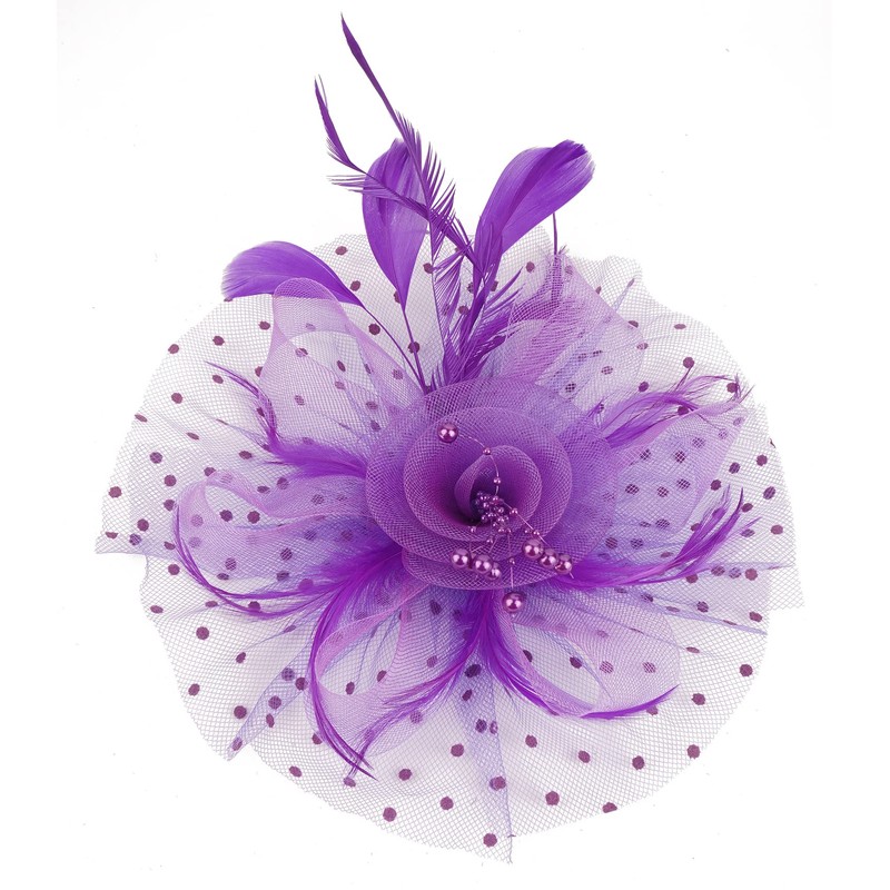Cizoe Fascinators Hat for Women Tea Party Headband Kentucky Derby Wedding Flower Cocktail Mesh Feathers Hair Clip(1-Purple)