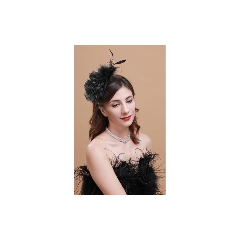 Cizoe Fascinators Hat for Women Tea Party Headband Kentucky Derby Wedding Flower Cocktail Mesh Feathers Hair Clip(3-black)