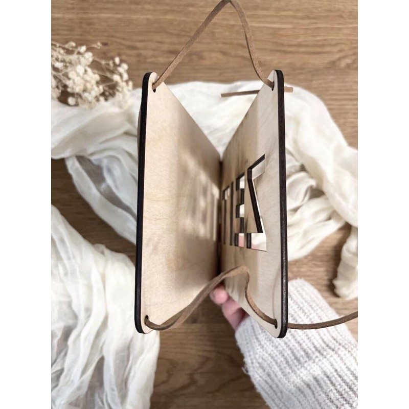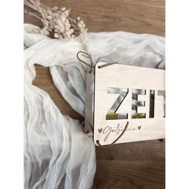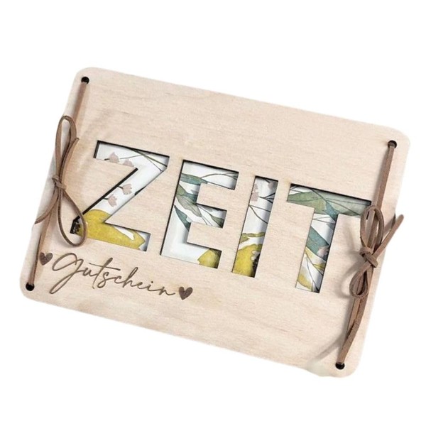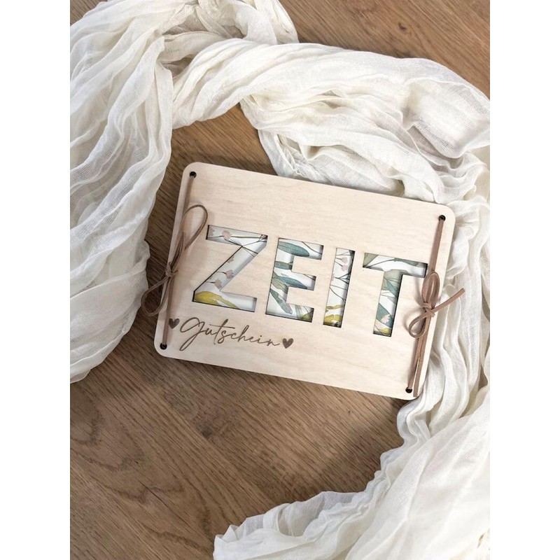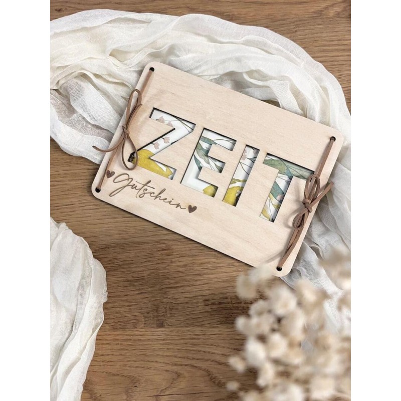 - With this voucher you can give time together. The corresponding voucher can be easily placed between the two wooden discs. These are then connected to the leather straps.