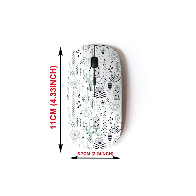 CJCBROES 2.4G Wireless Mouse with Cute Pattern Design for All Laptops and Desktops with Nano Receiver - Floral birdcages