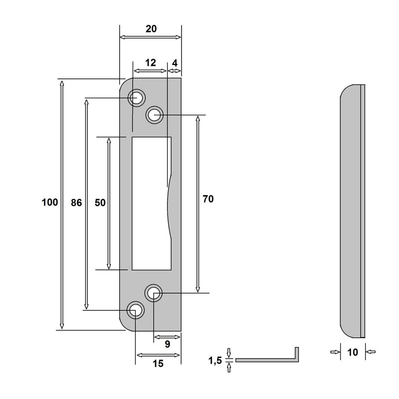 Ck-türbeschläge V2A Stainless Steel Matt Glass Door Lock Strike Plate