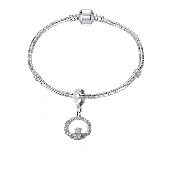 Claddagh FT12 2.3cmX2cm charm on a silver Rhodium Plated Snake Bracelet POSTED BY US GIFTS FOR ALL 2016 FROM DERBYSHIRE UK