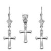 Claddagh Gold Religious Jewelry Rounded Mini Cross Charm Pendant and Earring Set in Sterling Silver