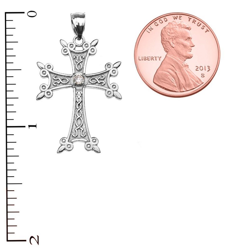 Claddagh Gold Religious Jewelry Solitaire Diamond Armenian Cross Pendant Necklace in Sterling Silver 18"