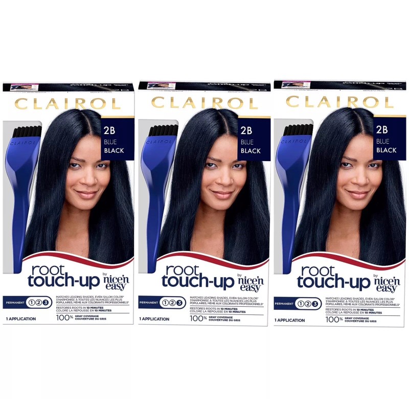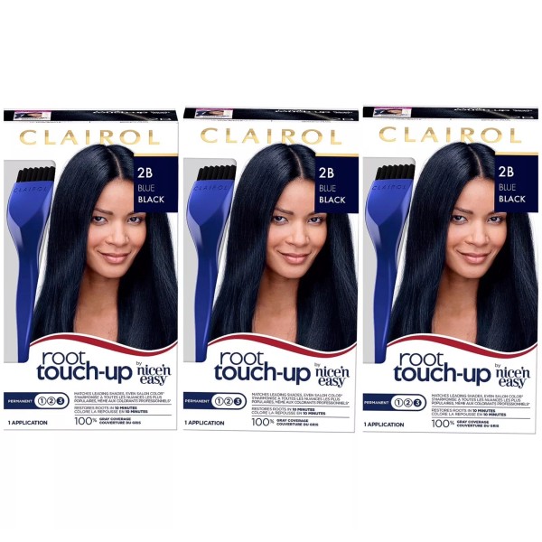 3 Pack Clairol Nice 'N Easy Root Touch-Up, Permanent Hair Color, 2B Blue Black.