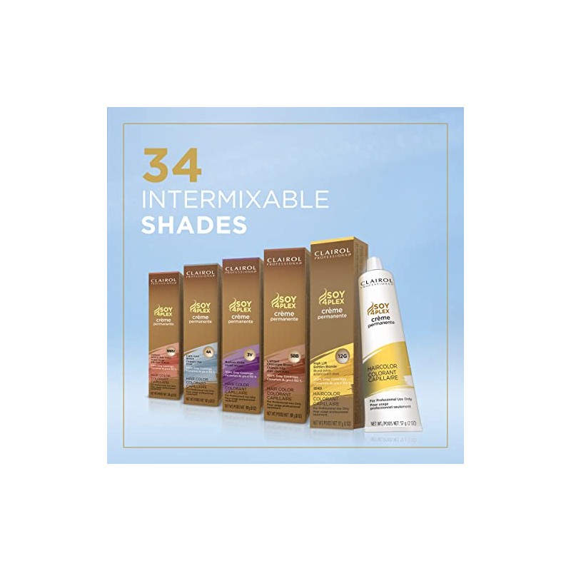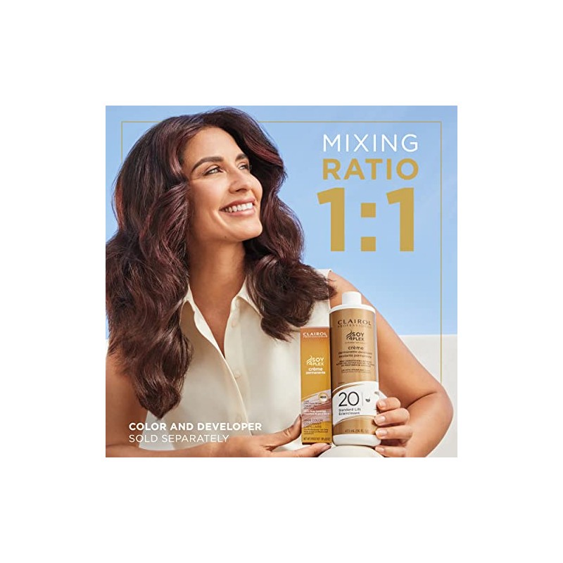 Clairol Professional Creme Permanente is the only professional color to utilize the conditioning and shine benefits of nature soy. The proprietary deep-conditioning Soy Complex creates luminous shine and silken conditioning you feel right at the sink. This technologically advanced line of 46 permanent creme hair colors are mixed with dedicated developer for bowl-and-brush application.