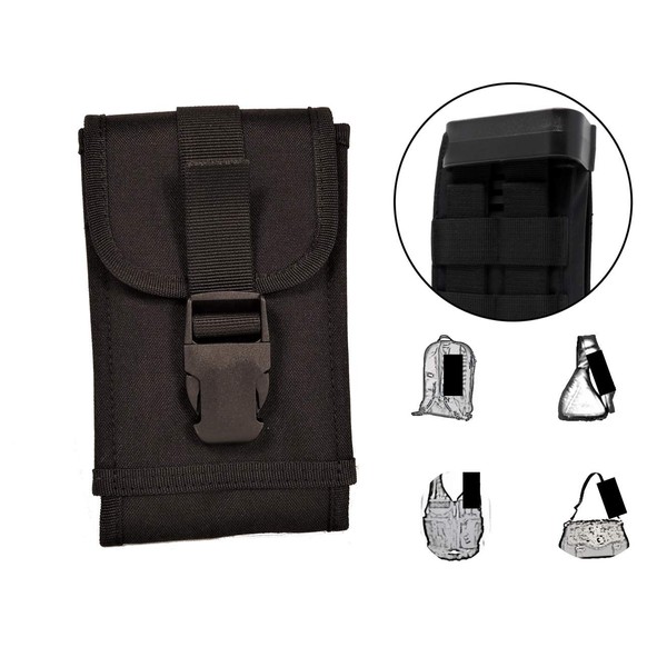 Clakit XL Smartphone StrapPack with Clip Front Flap (Black) - Backpack Shoulder Strap Attachment for Hikers, Travelers, Hunters, Students, and Commuters