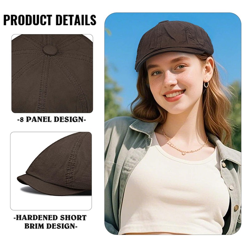- FEATURED DESIGN: This flap cap for women men adopts tight 8-piece splicing and fine detail design, which makes the hat shape smoother; External hardened short eaves (6 cm /2.36 inches in length) can properly block the sun and not block the line of sight; Built-in soft sweat-absorbent belt can quickly absorb sweat and keep you dry at all times. The simple solid color style makes it look simple and generous.