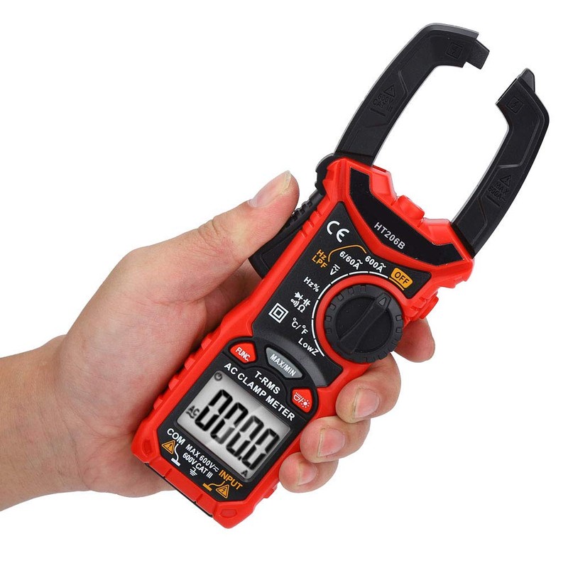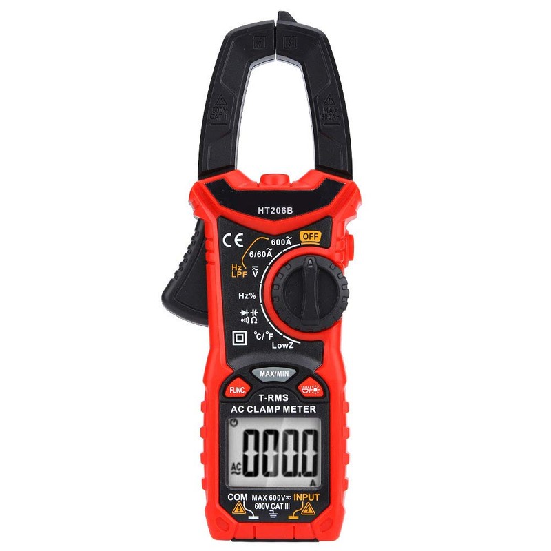 Clamp Meter Multimeter HT206 AC/DC Portable Multifunctional Clamp Meter with NCV TRMS Resistor Torch Continuity Buzzer 6000 (HT206B)