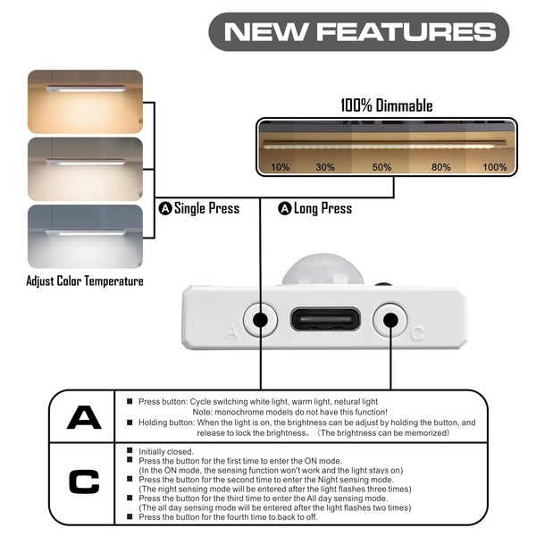 - 【4 Modes of Use】 Enjoy maximum comfort with its four operating modes: always on, active sensor all day, night sensor and off with adjustable brightness. Perfect to adapt to your lighting needs at any time. (brightness adjustable in all modes)
