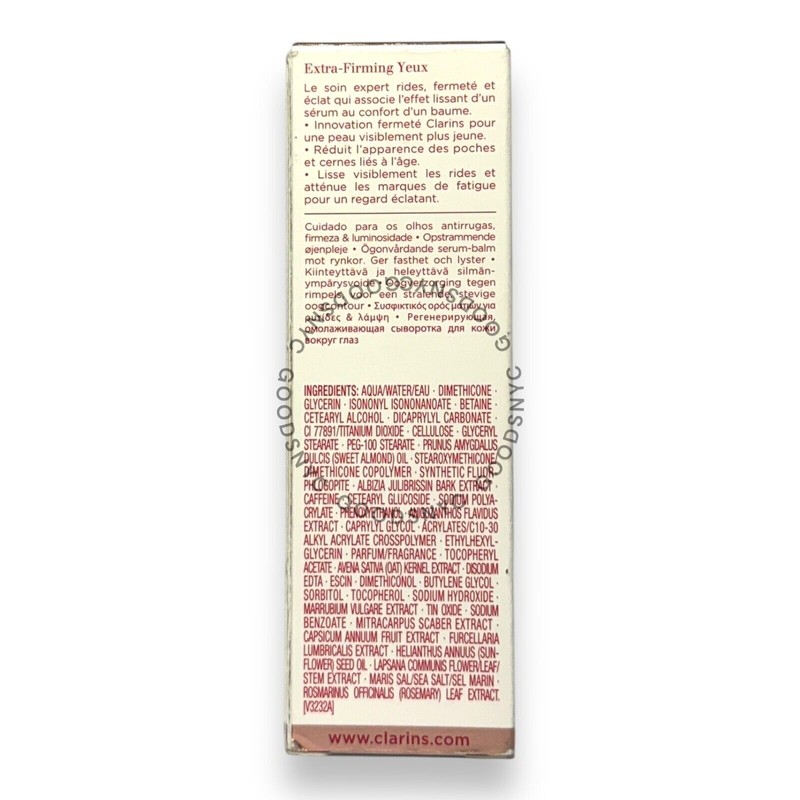 The **Clarins Extra-Firming Yeux Eye Expert Wrinkles & Radiance** is an anti-aging eye cream designed to address multiple concerns around the delicate eye area. Formulated for all skin types, this 0.5 oz (15 ml) product aims to reduce the appearance of wrinkles, dark circles, puffiness, and fatigue, while enhancing skin firmness and radiance.