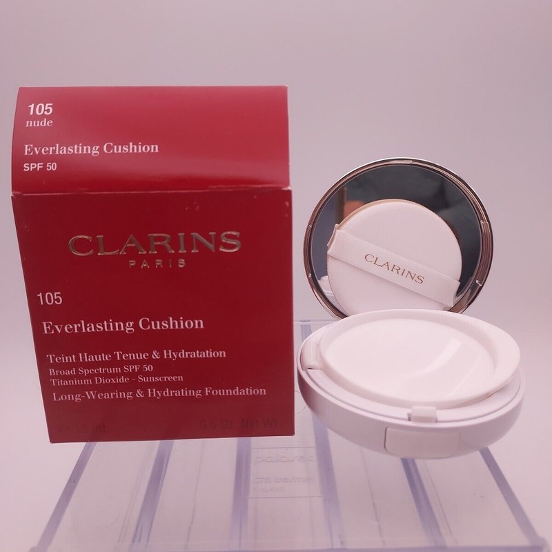 Clarins Everlasting Cushion Foundation SPF 50 Long Wearing & Hydrating Foundation Makeup NUDE 105 New in Box Sealed